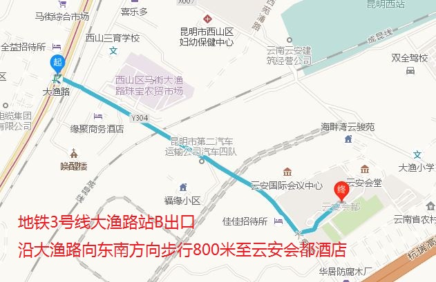 昆明云安會都酒店云安會堂(昆明市西山區馬街鎮大漁路,可乘坐地鐵3號線至大漁路站出站并步行800米)