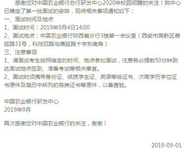 [陜西]2020農業銀行總行研發中心陜西地區面試公告