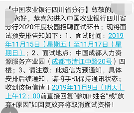 [四川]2020年中國農業銀行四川分行校園招聘面試通知