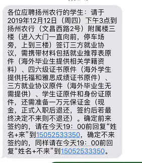 [江蘇]2020年農(nóng)業(yè)銀行揚(yáng)州分行校園招聘簽約通知