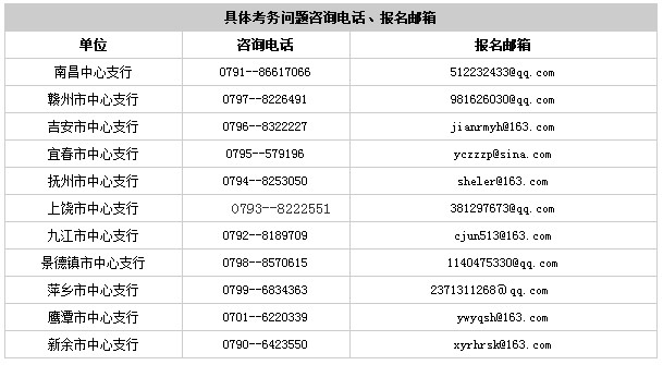 (二)報名方式:本次招聘采取網上報名的方式,報考人員下載《江西省人民銀行系統業務操作崗位聘用制員工招聘報名登記表》(附2),填寫個人真實信息并附本人近期免冠正面彩色電子照片發送到所報考單位指定郵箱(附后)。