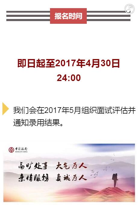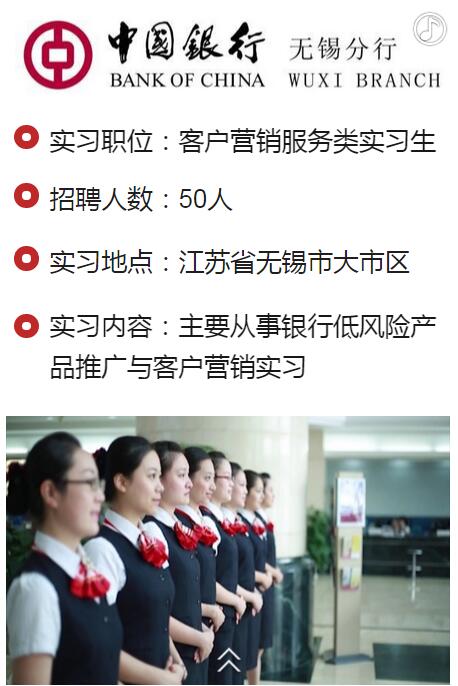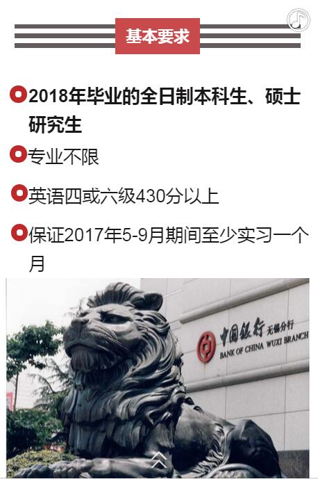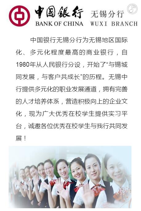 [江蘇]2017年中國銀行無錫分行“貸平臺儲未來”實習生計劃招聘公告