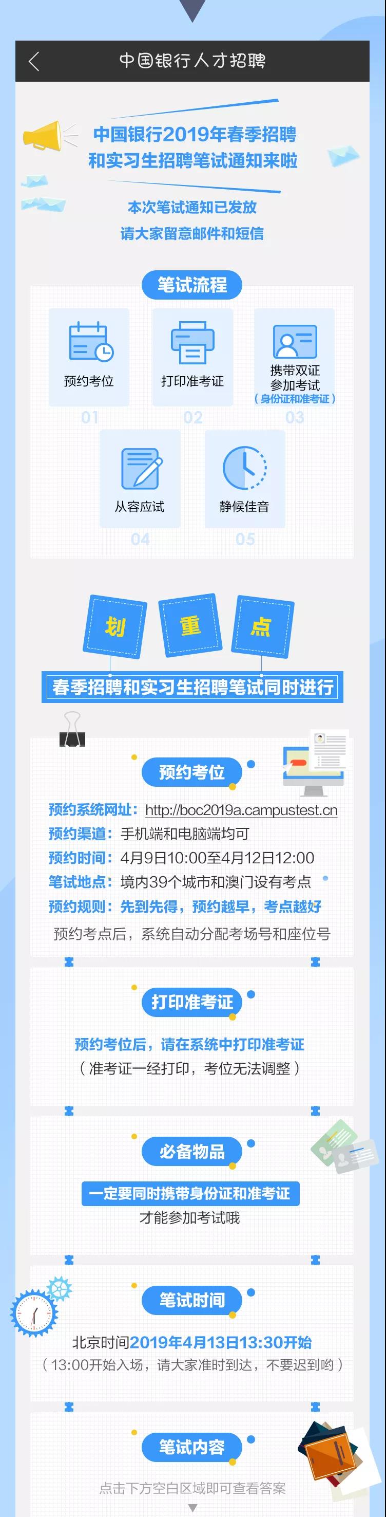 [全國]2019年中國銀行春季招聘和實習(xí)生招聘筆試通知公告