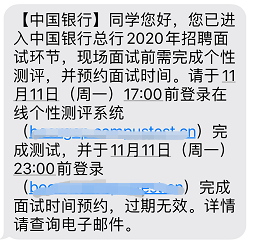 2020年中國銀行總行校園招聘個性測評及預約面試時間公告