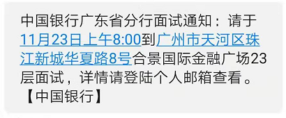 [廣東]2020年中國銀行廣東分行校園招聘面試通知