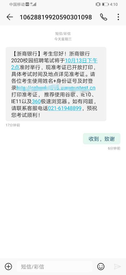 2020浙商銀行秋季校招招聘筆試時間及準考證打印通知