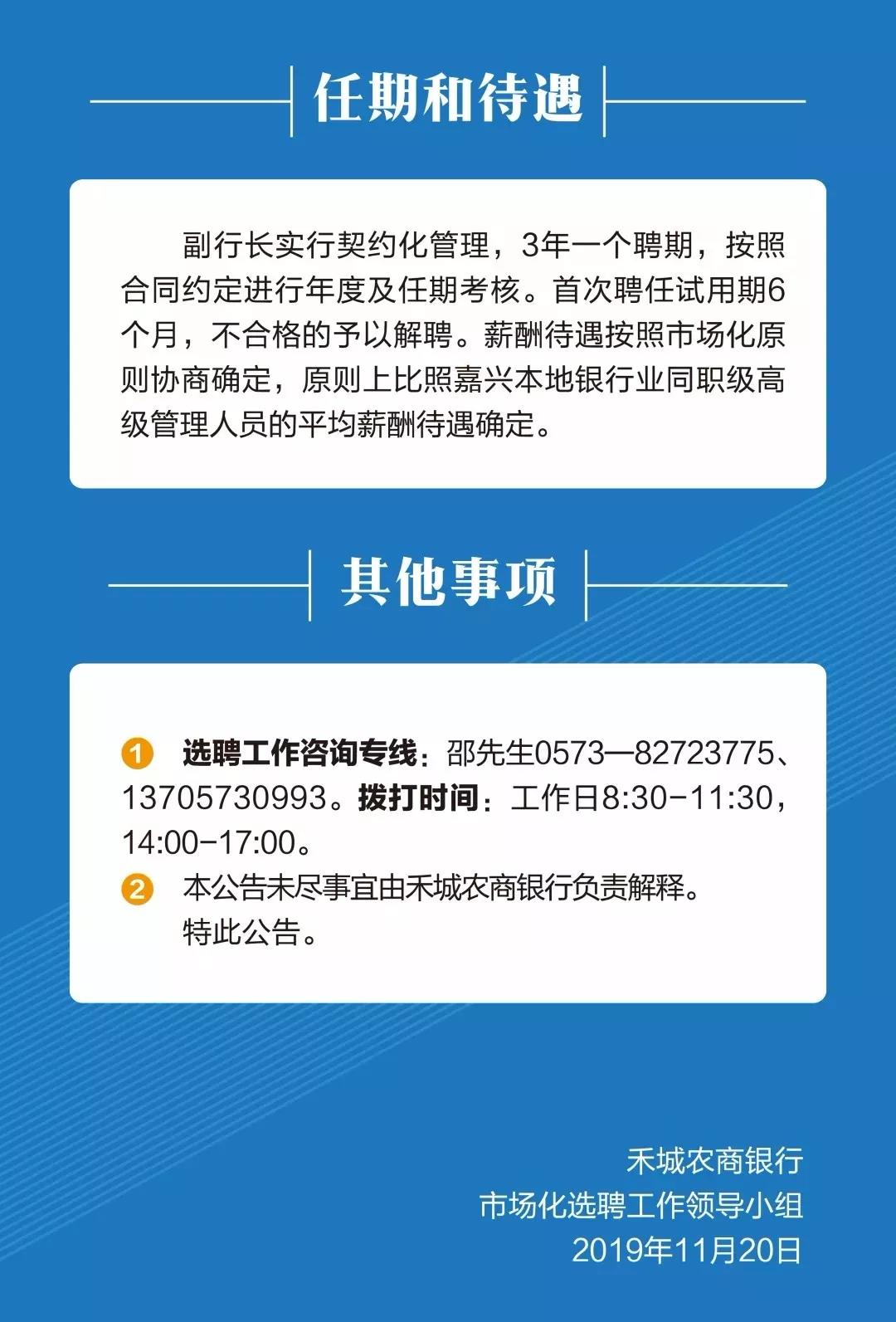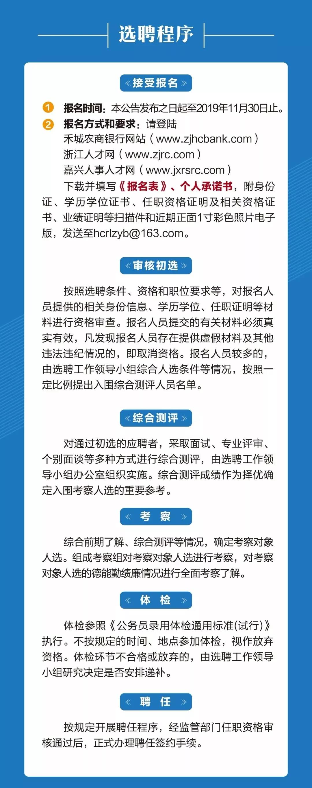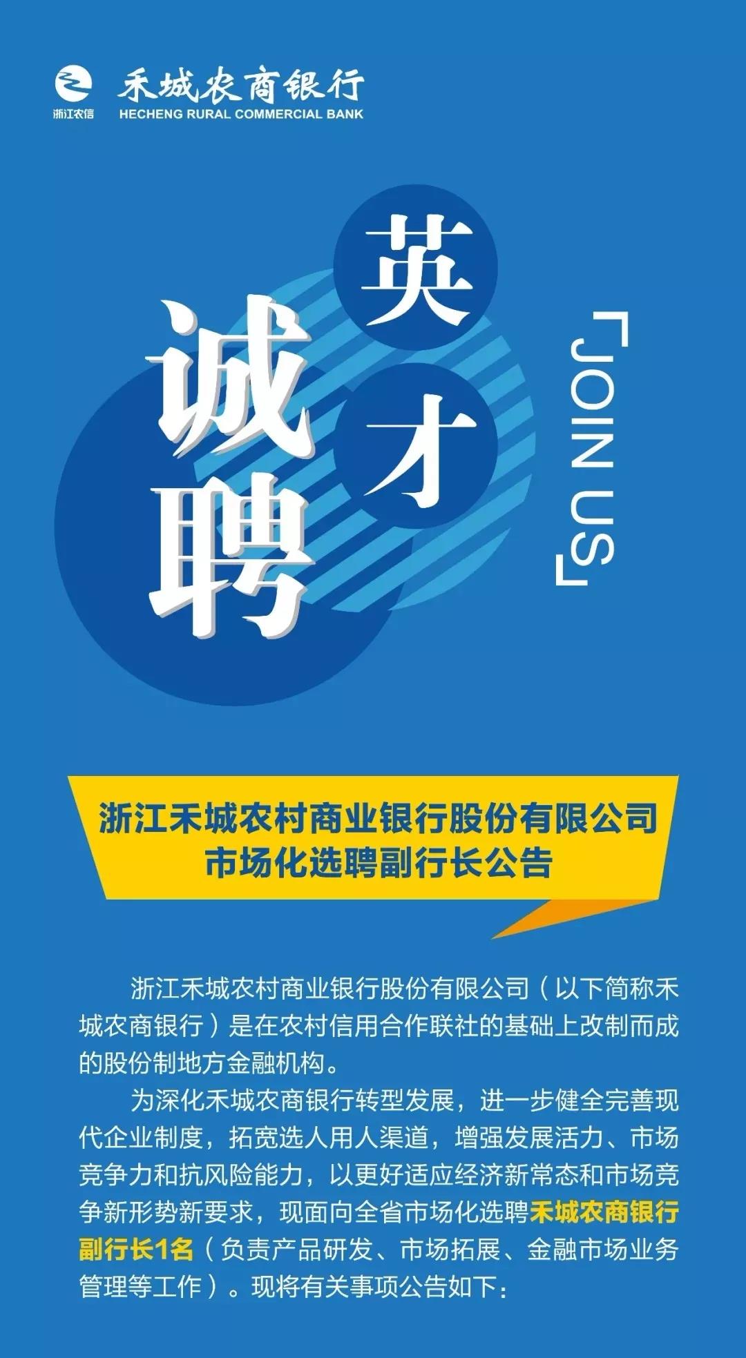 [浙江]2019年浙江禾城農村商業銀行市場化選聘副行長公告