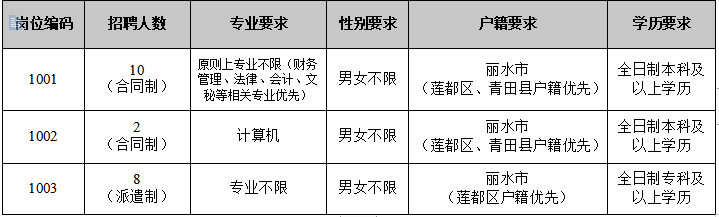 麗水市戶籍”放寬為“戶籍不限”,招聘詳情請見招聘公告。面試、筆試時間根據疫情控制情況另行通知。