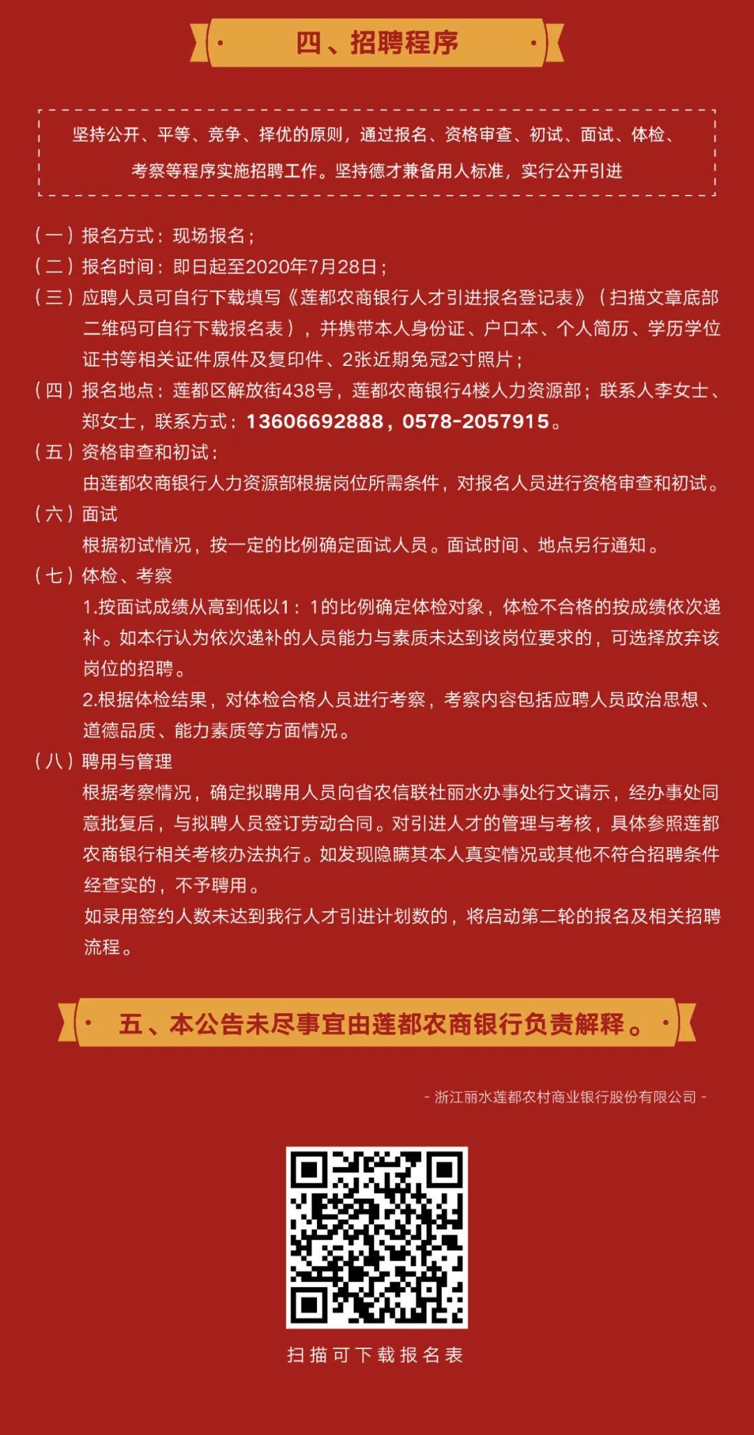 首頁 > 農村商業銀行招聘 > 蓮都農商銀行招聘 > [浙江]2020蓮都農商銀行人才引進公告