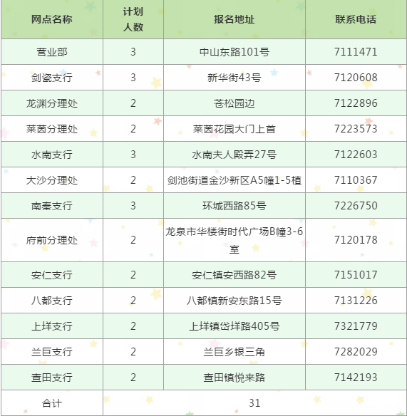 2019浙江麗水龍泉農商銀行暑期大學生社會實踐招聘公告