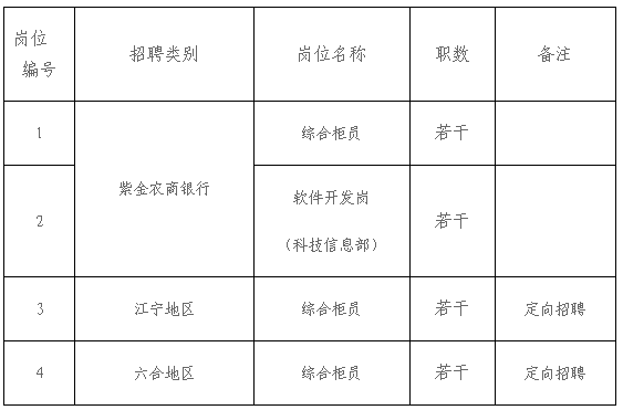 根據業務發展需要和戰略規劃,擬面向全國招聘綜合柜員和軟件開發崗若干名。具體崗位及職數如下表所示:
