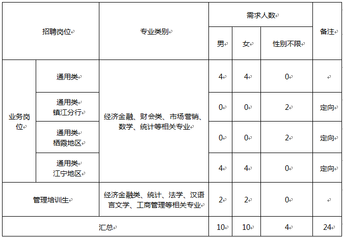 2.非定向招聘的崗位,根據需要由總行統一分配于南京市(不含