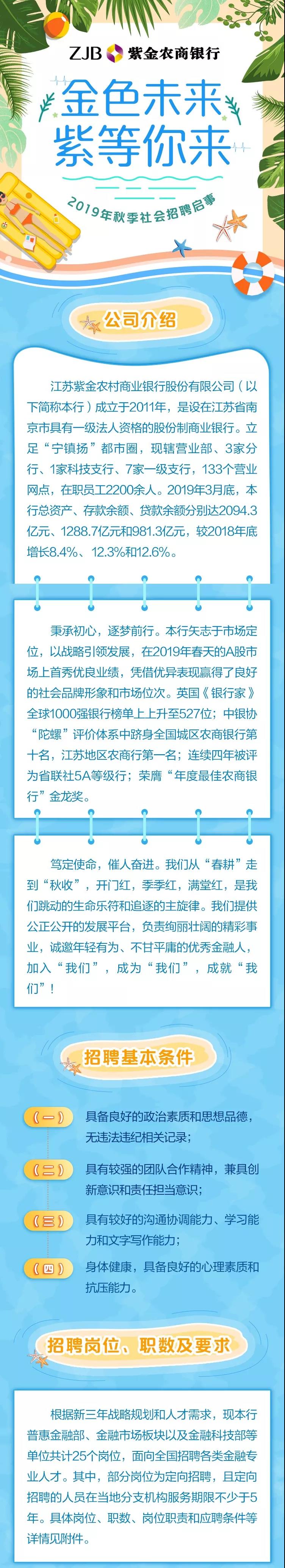 [江蘇]2019年紫金農(nóng)商銀行秋季社會(huì)招聘正式開啟公告