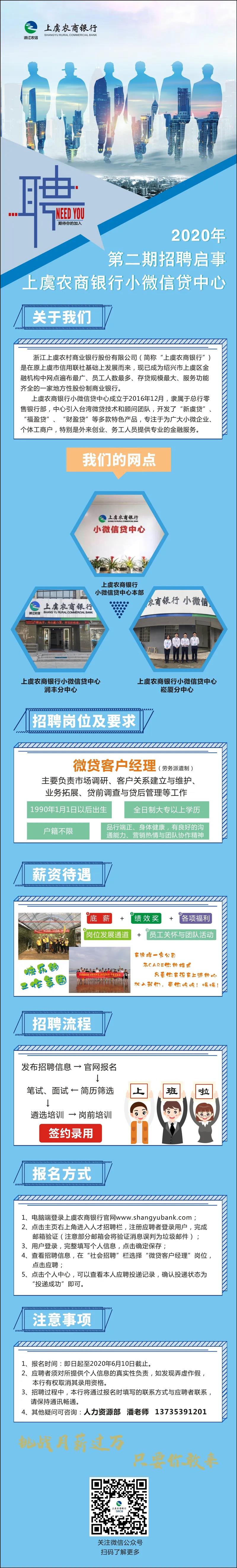 2020年上虞農商銀行小微信貸中心第二期招聘啟事