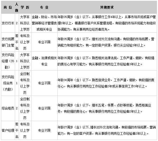溫州鹿城農商銀行作為主發起行發起設立的新型農村金融機構,立足區域、服務“三農”、服務社區,致力為所在地區的中小客戶提供全方位的金融服務。今年我行將在路南街道設立路南支行、金清鎮設立金清支行,特向社會公開招聘優秀人才若干名,歡迎有志之士加盟!