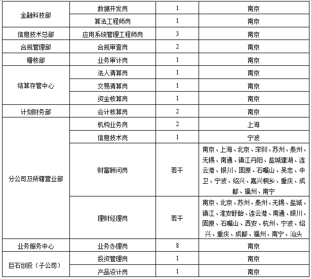 4、南京證券有權(quán)根據(jù)崗位需要及報(bào)名情況等,調(diào)整、取消或終止個(gè)別崗位的招聘工作,并對(duì)本次招聘享有最終解釋權(quán)。