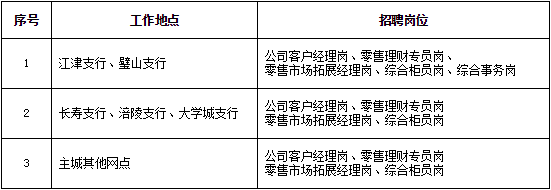 (五)綜合事務崗2名(江津支行、璧山支行各1名)