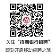 2、官方微信:掃描下方二維碼,關注“招商銀行招聘”微信公眾平臺,申請感興趣的職位,投遞簡歷!關注后,校園宣講,筆試、面試等安排第一時間獲取!