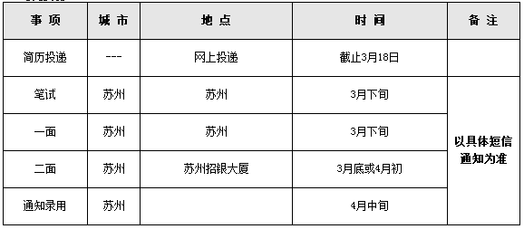 崗位篩選方式:“校園招聘→各機構(gòu)校園招聘→蘇州分行→選擇相應(yīng)職位投遞電子簡歷”。
