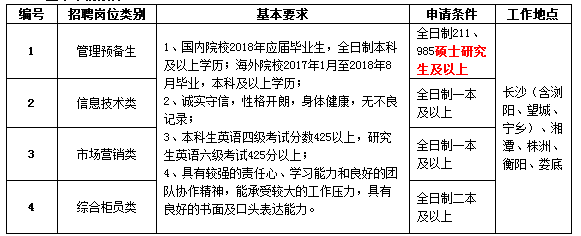 長沙分行現面向全國高校招聘2018屆全日制普通高等院校畢業生和海外歸國留學生,具體如下: