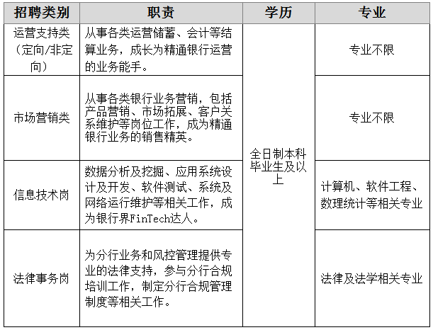 6、筆試和面試通知將通過短信發(fā)送,當(dāng)您的手機(jī)號(hào)碼變更時(shí),請(qǐng)及時(shí)更新注冊(cè)信息,這是我們跟您聯(lián)系的重要渠道;7、應(yīng)聘渠道以招商銀行官網(wǎng)網(wǎng)申為準(zhǔn)。招商銀行招聘不收取任何費(fèi)用!