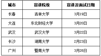 廣州等城市舉行校園宣講會,并在宣講現(xiàn)場舉行面試,以下為暫定行程,請您盡早投遞簡歷,我們將以短信方式進行通知。