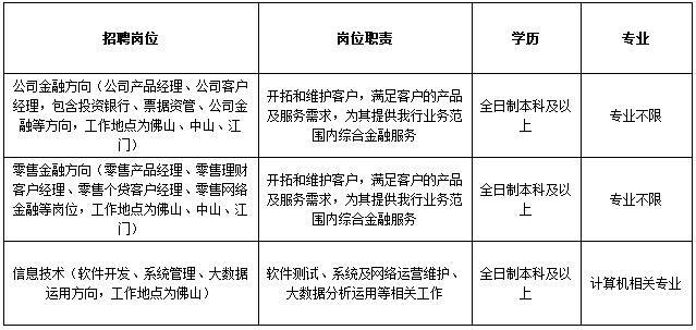 佛山分行現面向2018屆優秀海外歸國留學生招聘,具體如下:
