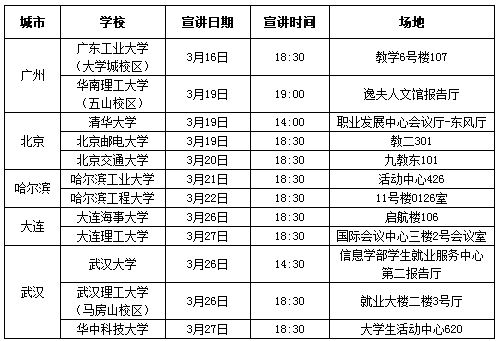 武漢、廣州等地組織專場校園宣講會,并在宣講現場組織面試,具體安排如下:
