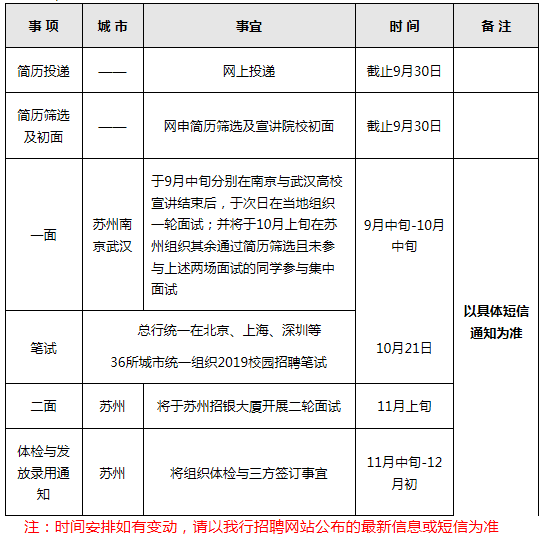 溫馨提示:敬請密切關(guān)注招商銀行網(wǎng)站 “人才招聘-校園招聘-蘇州分行”模塊、“招商銀行招聘”及“招商銀行蘇州分行”官方微信公眾平臺了解校園宣講會及招聘場地安排。
