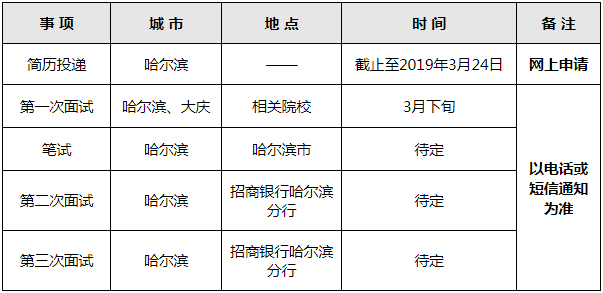 5.招商銀行哈爾濱分行招聘不收取任何費用。