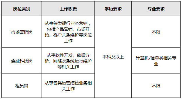 銀行招聘網(wǎng)(www.llwin.cn)溫馨提示:凡告知“加qq聯(lián)系、無需任何條件、工作地點(diǎn)不限”,收取服裝費(fèi)、押金、報(bào)名費(fèi)等各種費(fèi)用的信息均有欺詐嫌疑,請保持警惕。