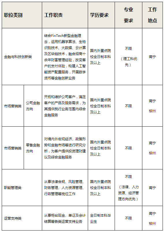 方式二:搜索并關注“招商銀行招聘”微信公眾平臺,或掃描下方二維碼,點擊“我要應聘-校園招聘”,選擇南寧分行,申請感興趣的職位,投遞簡歷!