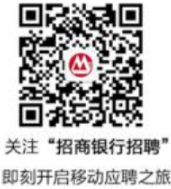 2.方式二:掃描下方二維碼,關注“招商銀行招聘”微信公眾平臺,點擊“校園招聘”,選擇華南地區深圳分行,申請感興趣的職位,投遞簡歷!