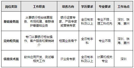 9. 基礎業務崗、定向柜員崗專業不限,基礎業務崗本批次理工科優先考慮。