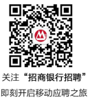 掃描下方二維碼,關注“招商銀行招聘”微信公眾平臺,獲取最新的校園招聘信息,點擊“校園招聘”,查看鄭州分行招聘職位,在線注冊,投遞簡歷。