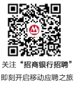 掃描下方二維碼,關注“招商銀行招聘”微信公眾平臺,獲取最新的校園招聘信息,快速投遞簡歷。