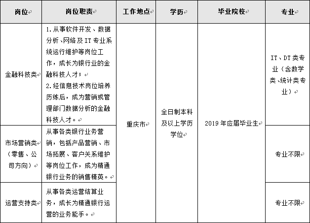 我行熱忱邀請優秀的2019年應屆畢業生加盟招行,共創輝煌,具體要求如下: