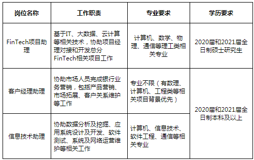 國內全日制普通高等院;蚝M庠盒4蠖⒋笕、研一、研二在讀大學生。對于2019年畢業的應屆畢業生,實習表現優異者,將獲得我行“2019校招直通OFFER”。