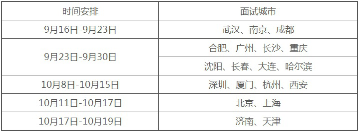 注:面試地點將根據投遞崗位時填寫的面試城市統一安排,具體面試時間及地點以后續通知為準