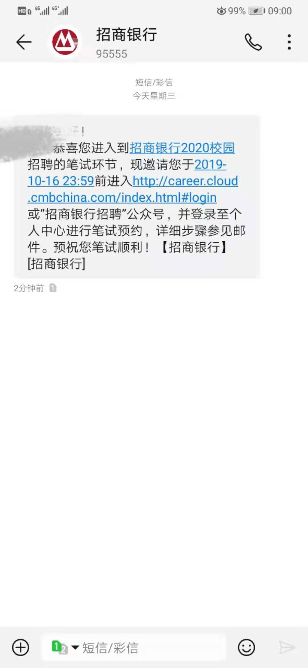 主頁 > 商業銀行招聘 > 招商銀行招聘 > [全國]2020招商銀行秋季校園招聘筆試通知