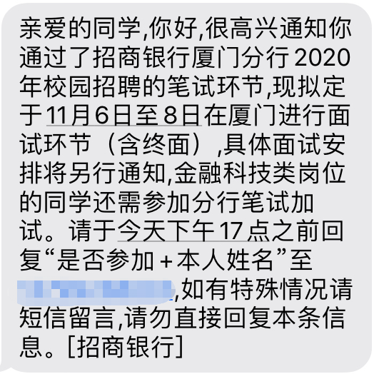 [福建]2020招商銀行廈門分行校招面試通知公告