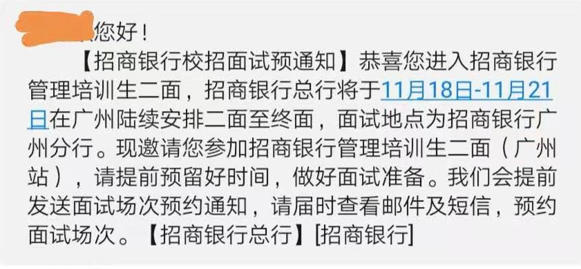 [廣東]2020招商銀行總行管理培訓生校招面試預通知公告