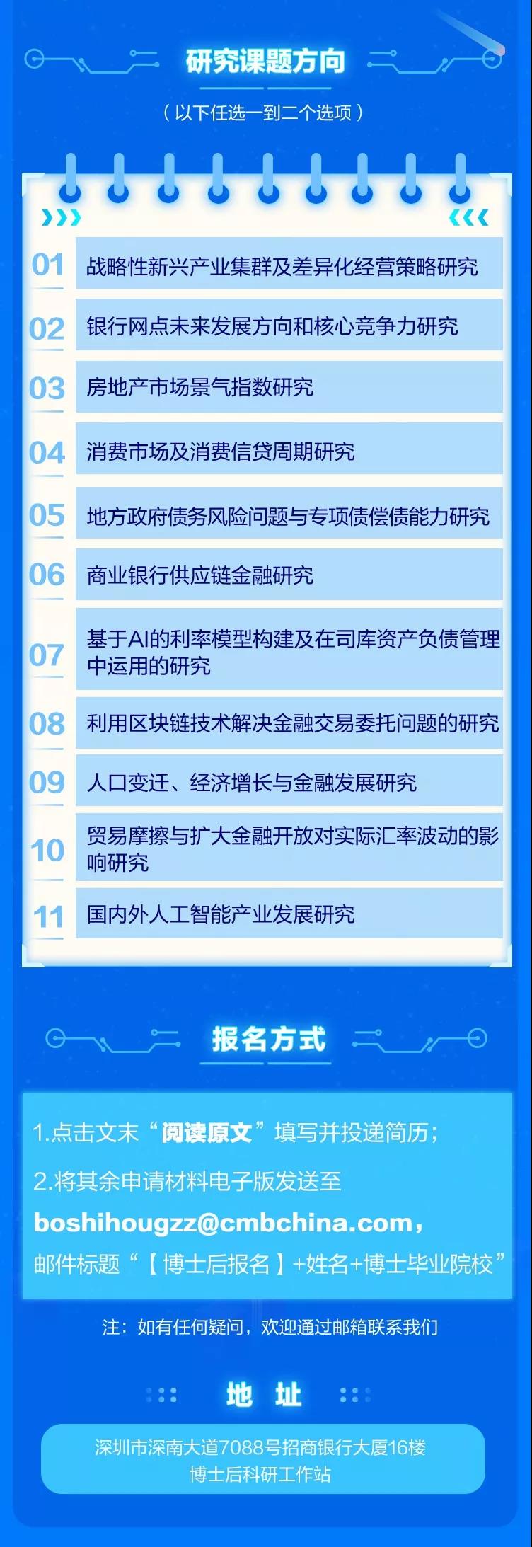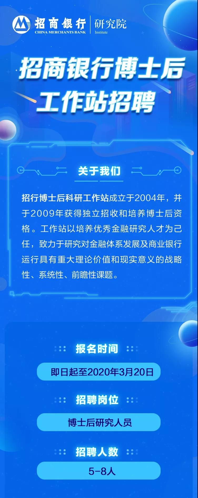[廣東]2020年招商銀行博士后工作站招聘公告
