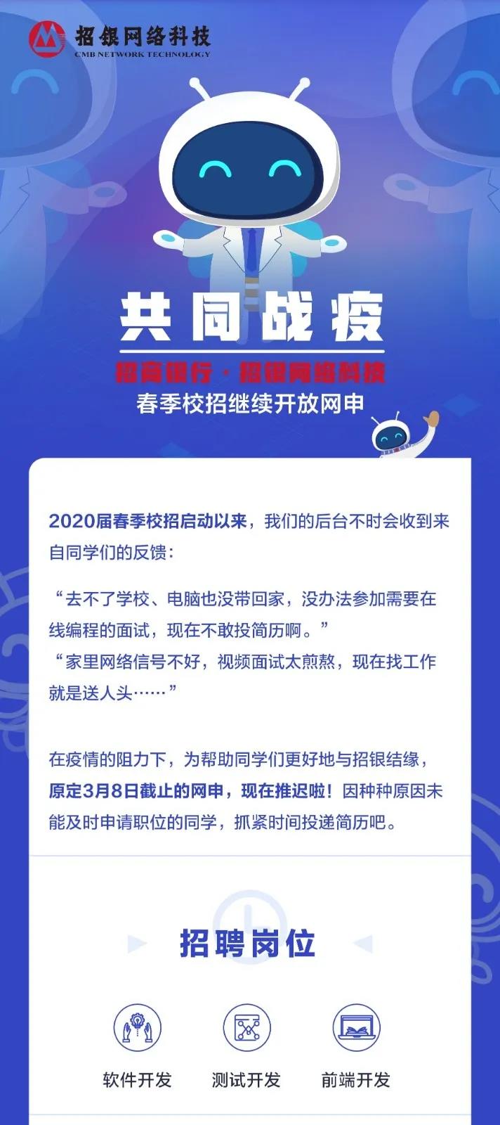 2020招商銀行招銀網絡科技春季校招繼續開放網申公告
