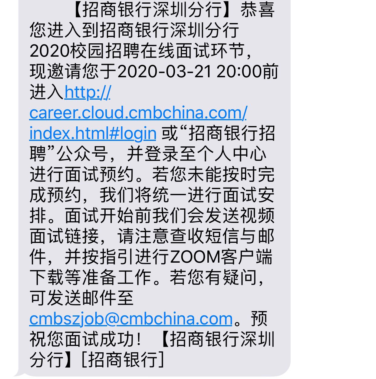 2020年招商銀行深圳分行春季校園招聘面試通知公告