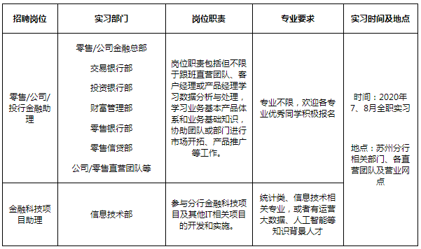 實習生招聘–選擇蘇州分行-選擇心儀崗位申請”。