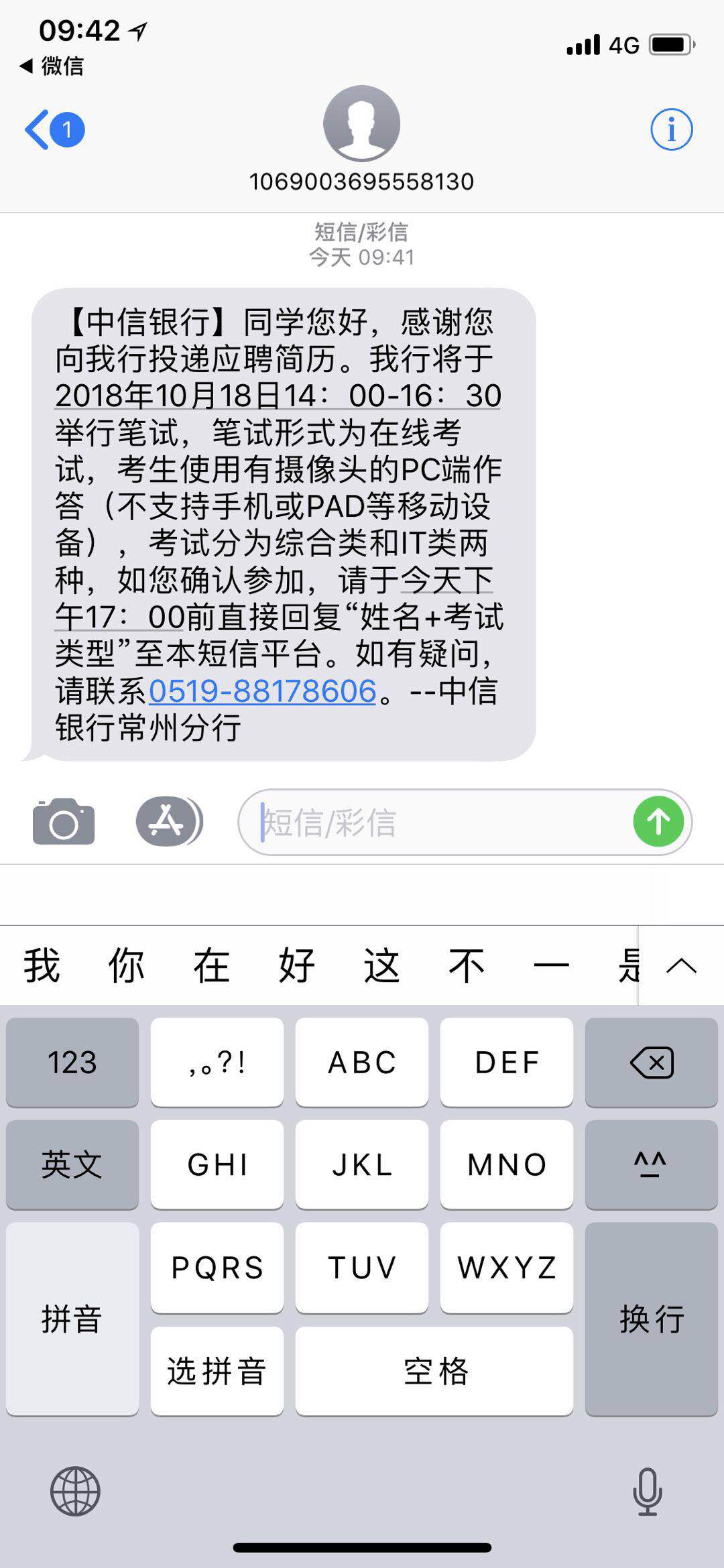 主頁(yè) > 商業(yè)銀行招聘 > 中信銀行招聘 > [全國(guó)]2019年中信銀行校園招聘筆試通知
