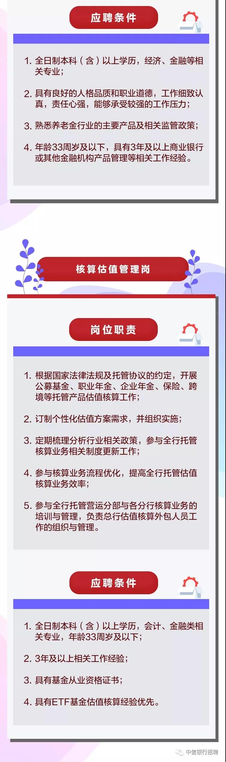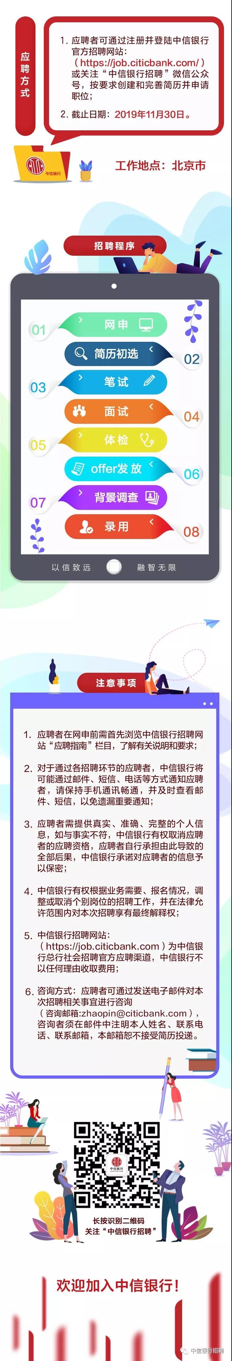 [北京]2019中信銀行總行資產托管部社會招聘公告